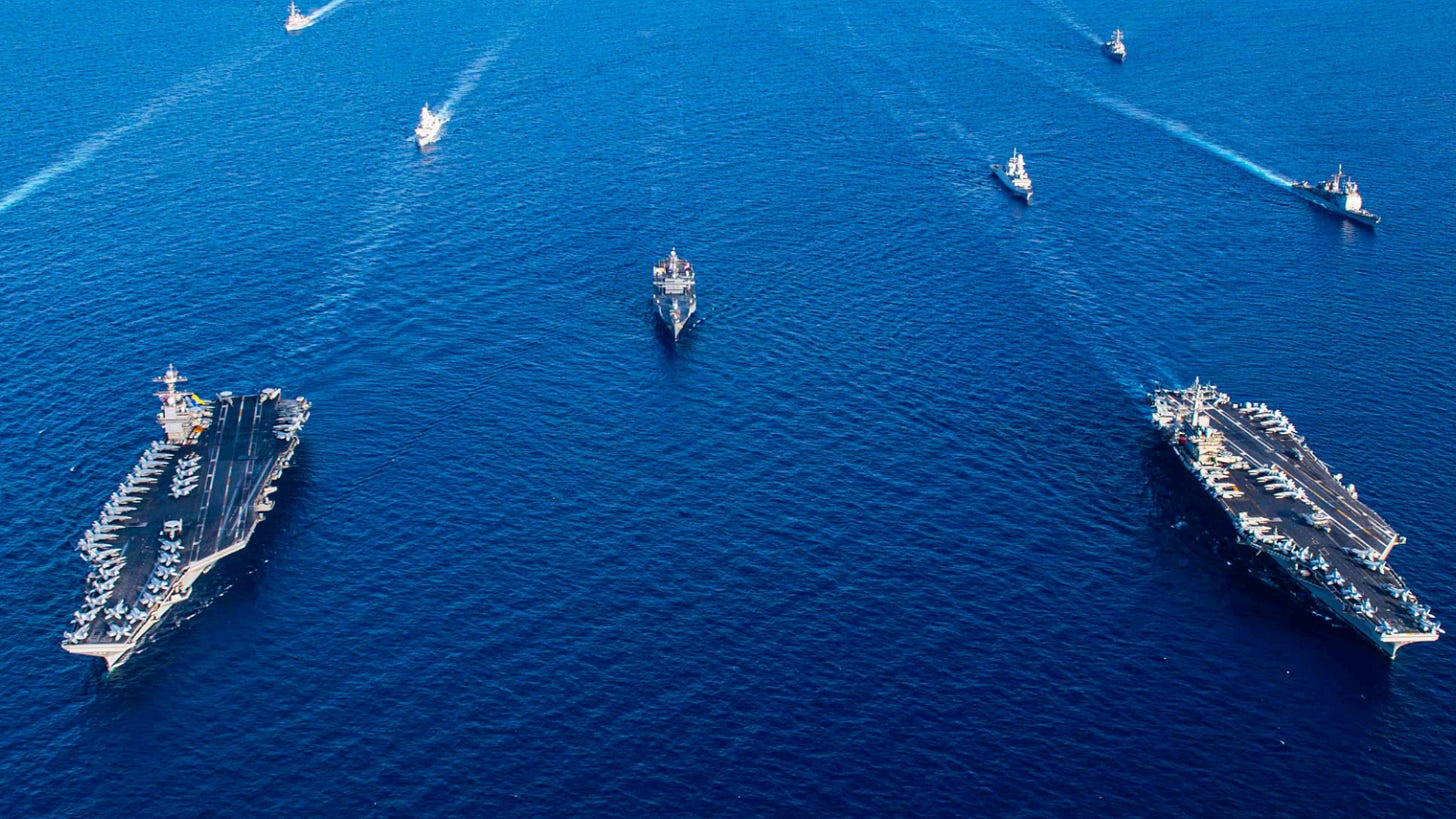 (Träger Dweigt D.Eisenhower und USS Gerald R. Ford: United States Navy, Public domain, via Wikimedia Commons