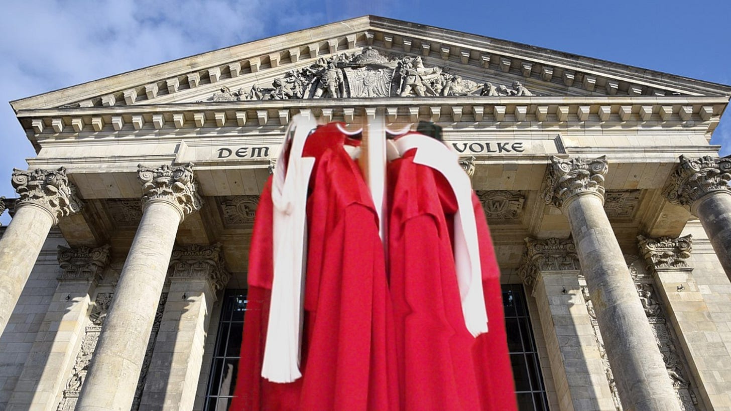 (Bildmontage: Frage zur Zeit; Reichstag: Ank Kumar, CC BY-SA 4.0, via Wikimedia Commons; Richterroben des Bundesverfassungsgericht: Benutzer:Evilboy, CC BY-SA 3.0 DE, via Wikimedia Commons)